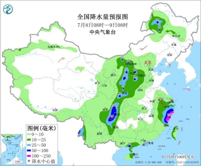 除了“丹娜丝”带给我国的降雨外,未来三天,西北地区东部、华北地区西部、四川盆地、江南中东部、云南等地多降雨,部分地区有中到大雨,局地有暴雨或大暴雨。